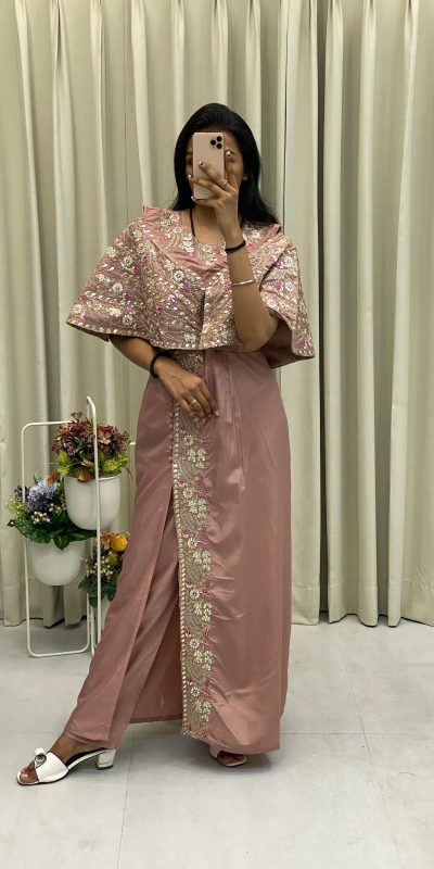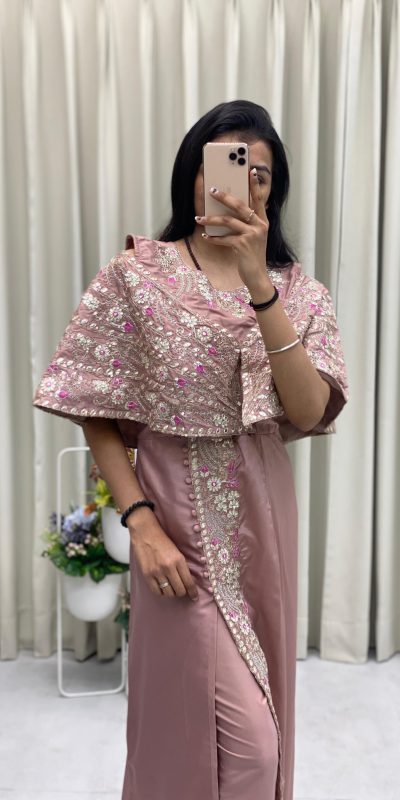 | Fabrics | Top Fabrics :Fendi Work :embroidery Work Inner : Micro Height : 33 inch Top Size : Free Size Semi StitchedCircular Palazzo Fabrics : Fendi Work : Embroidery Work With Full stitched Height : 38 inch Dupatta : Georgette With Lace Work 2.2 Mtr |
