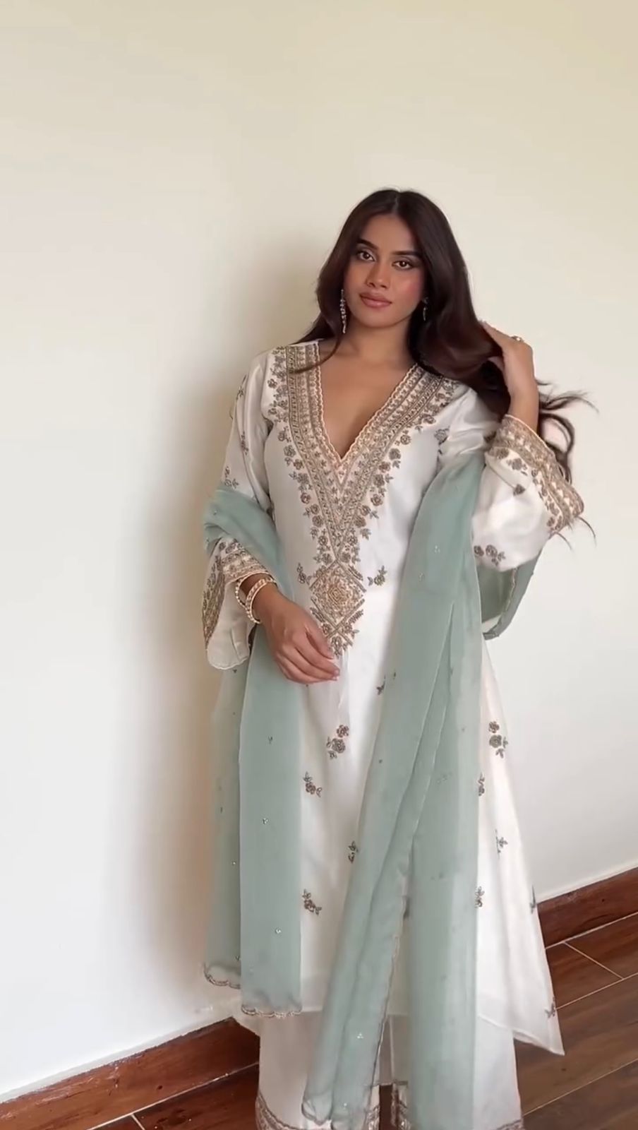 LG 2067 Off White Color Roman Silk Salwar Suit with Embroidery Work. Available at ₹1999 only. Delivery 4-6 Working Days. Shop now. | Jump Suits, Salwar suit, Casual Suits, Creative suits, Designer Suits, Palazzo Suits, Party Wear Suits, Patiala Suits, Straight Suits