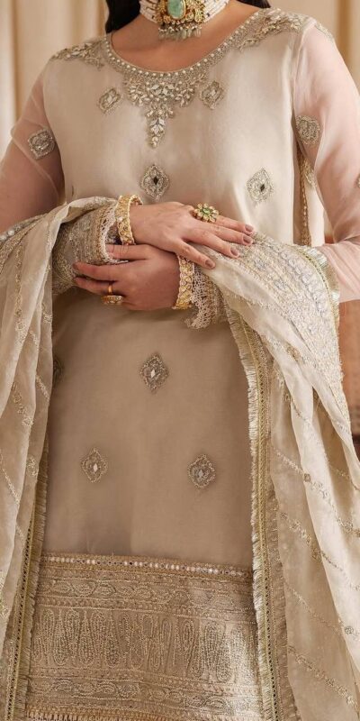 Off White Tabby Organza Embroidery Work Salwar Suit