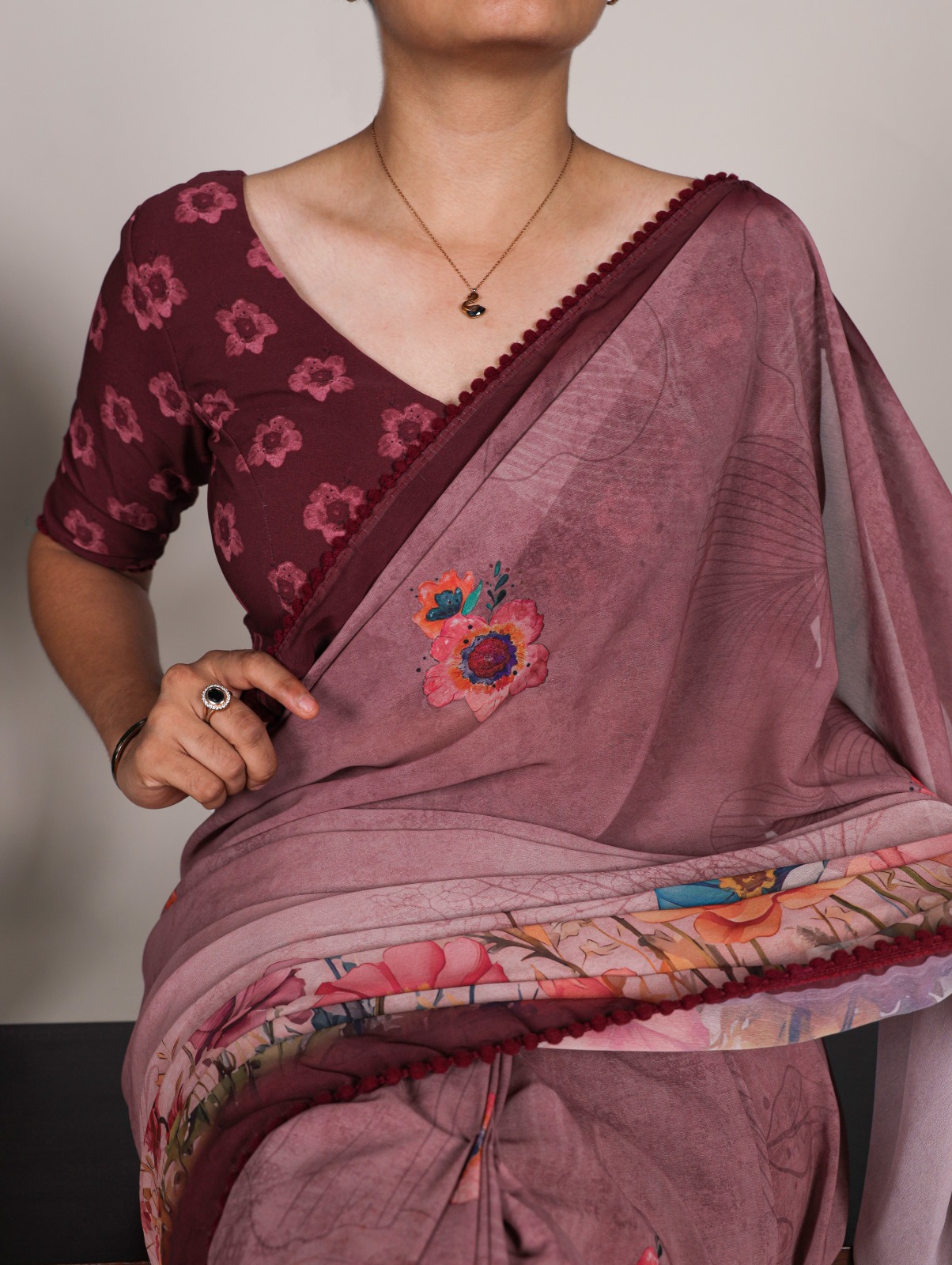 25 reviews for Onion Georgette Floral Saree