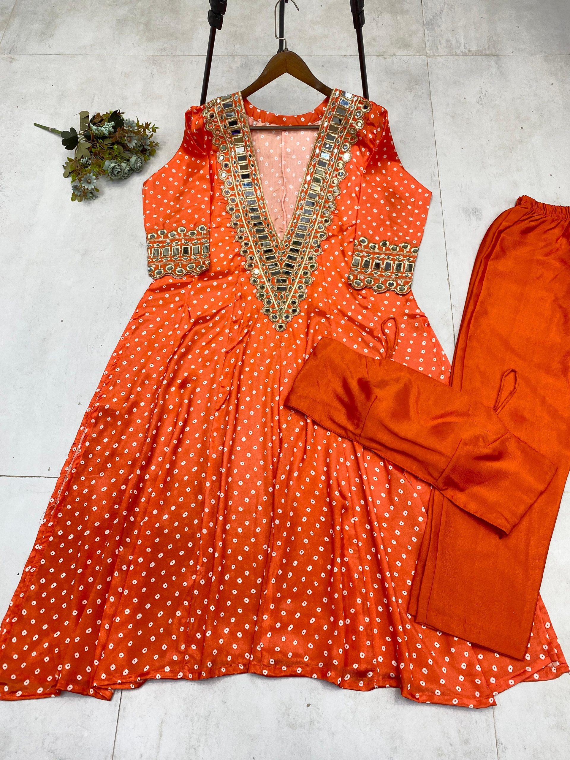 LG 1944 Orange Color Chinon digital Printed Mirror Embroidery Salwar Suit Casual, Wedding, Festive, Events . Expected Delivery  4-6 Working Days @1649/- only      | Jump Suits, Salwar suit, Casual Suits, Creative suits, Designer Suits, Palazzo Suits, Party Wear Suits, Patiala Suits, Straight Suits