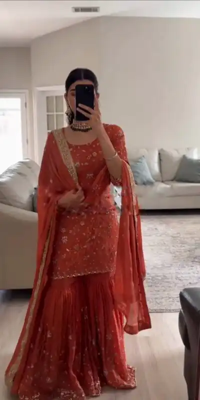 Top Fabric : Heavy Faux Georgette With 5mm Embroidery Sequence Work With Full Sleeve