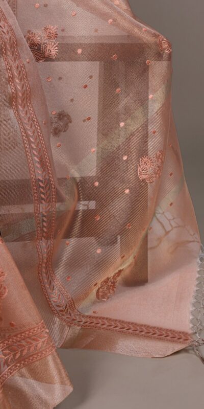 Orange Poly Shimmer Embroidery Work Saree