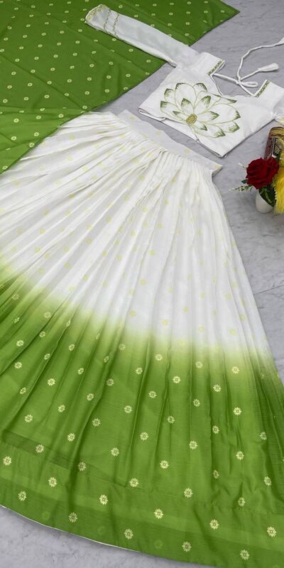 Parrot Green Chinon Digital Print Lehenga Choli