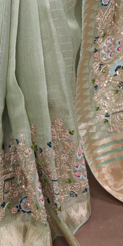 Saree work : Embroidery Beads Work With Zari Weaving Work Border