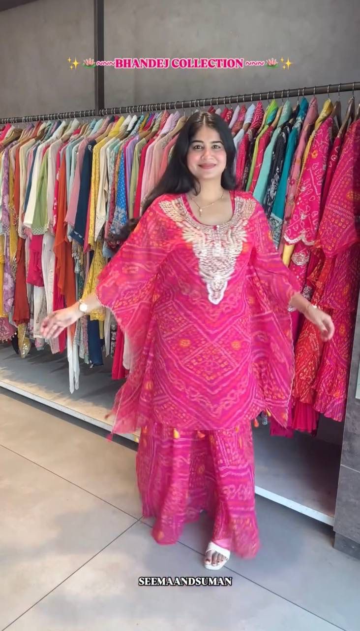 kaftan Work : Fancy Digital Print With Embroidered Sequins Work With Fancy Latkan