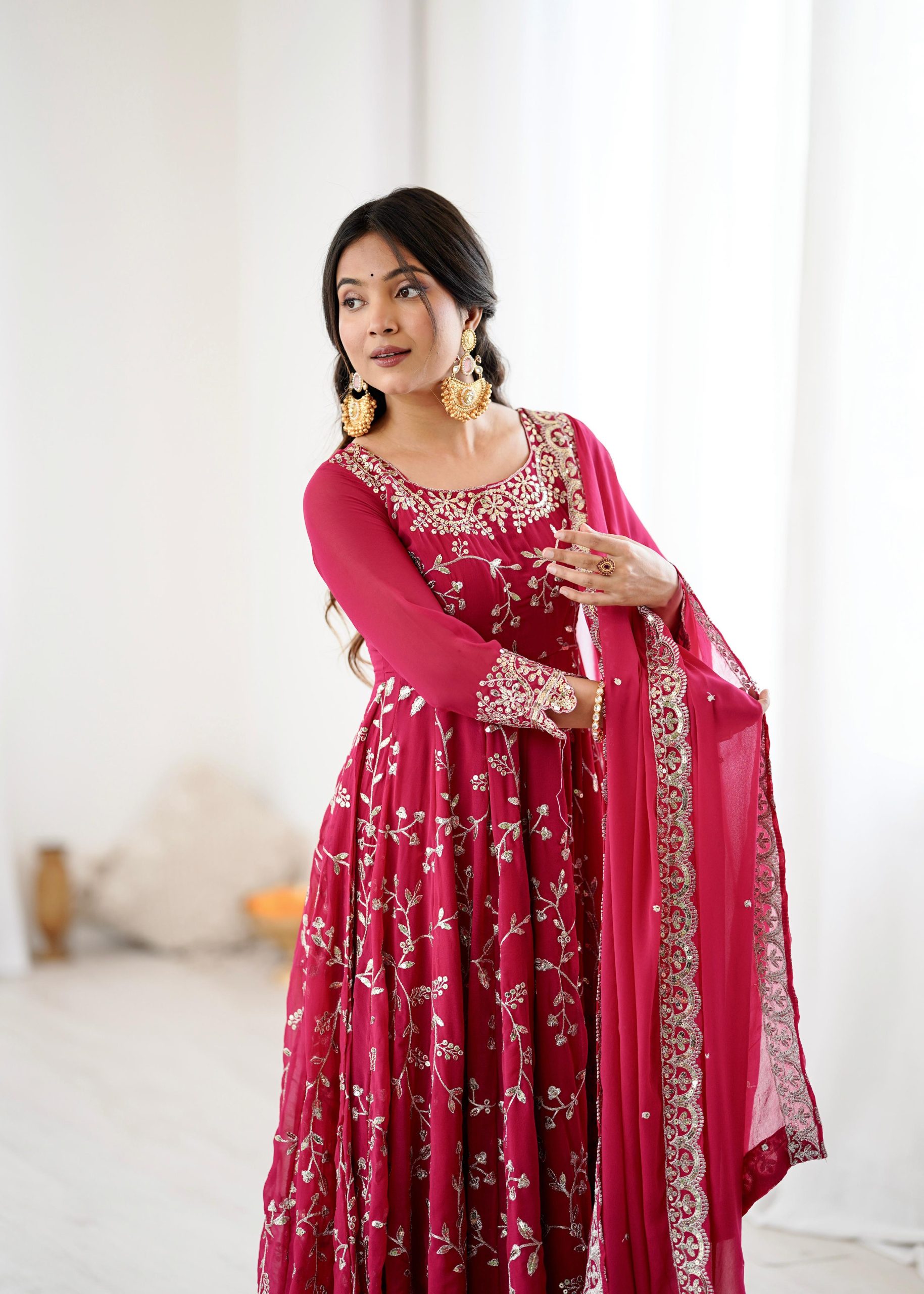 SRK 5299 Pink Faux Georgette With Sequence Work Perfect for Wedding, Party, Lohri, Temple Visit, Ganesh Chaturthi Festive, Events, 4-6 Working Days At 2149 | Gowns, Bollywood Gowns, Creative Gowns, Designer Gowns, Embroidered Gowns, Party Wear Gowns