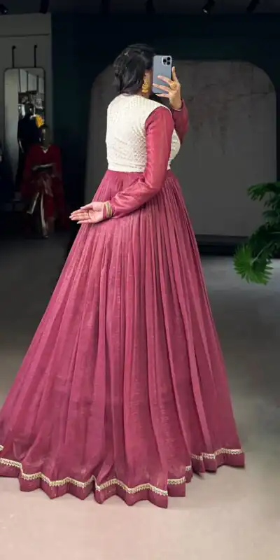 Pink Silver Glossy Sequins Embroidery Work Gown
