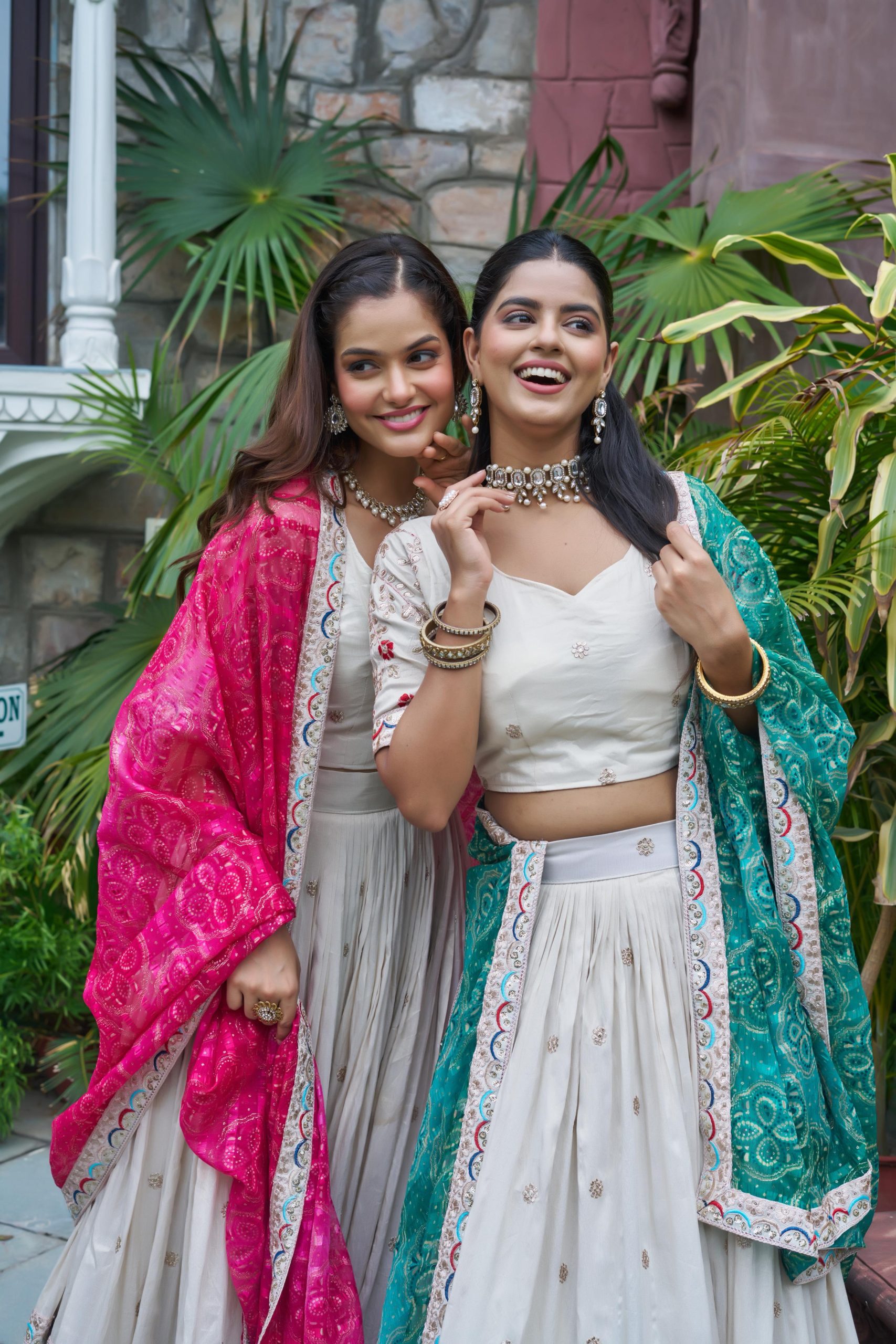 1 Lehenga :: 1 Blouse :: 1 Dupatta :: Drawstring with Zip |