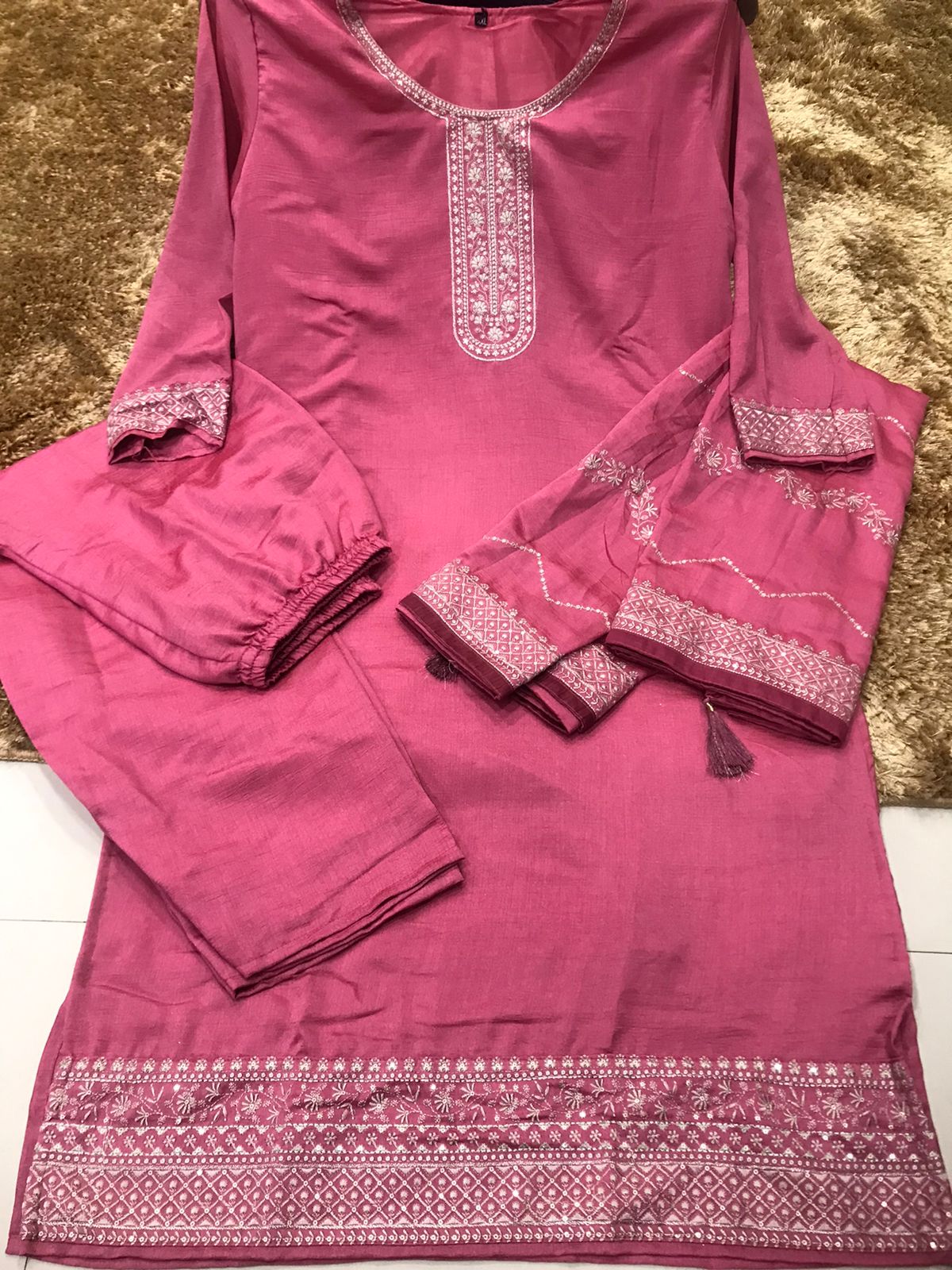Fabric Details: --- Top:-Vichitra & Embroidery work Sleeve:- :- Vichitra & Embroidery Work Top Length :- 48+Max up to Size :- 44 Max up to Type :- Full Stitched BOTTOM : Vichitra Dupatta :- Vichitra & Embroidery Work |