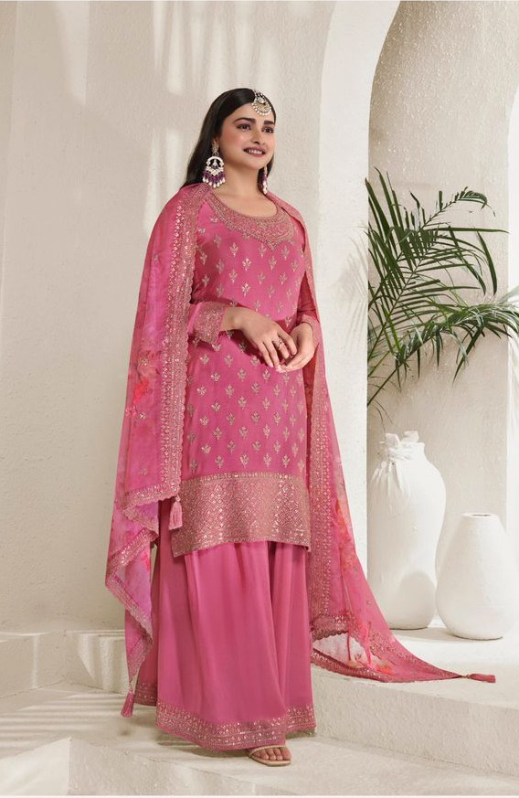 Pink Viscose Chinon Embroidery Work Salwar Suit