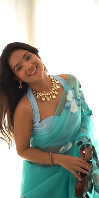 | Fabrics | Saree Fabric : pure soft Organza silk Design : Sky blue color flower design on all over the body and pallu Ready To Wear Blouse : same color banglory silk running unstitched blouse piece |