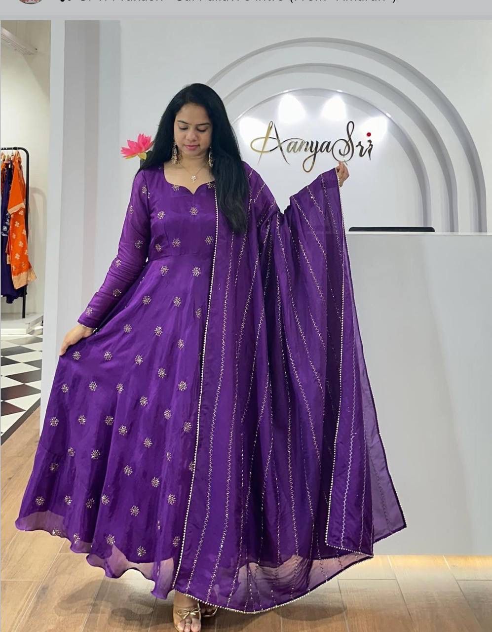 PC 482 Purple Chinon Gown with Embroidery Work. Wedding, Party, Festive, Events, Introductory Price ₹1949. Delivery 4-6 Working Days. Shop now. | Gowns, Bollywood Gowns, Creative Gowns, Designer Gowns, Embroidered Gowns, Party Wear Gowns