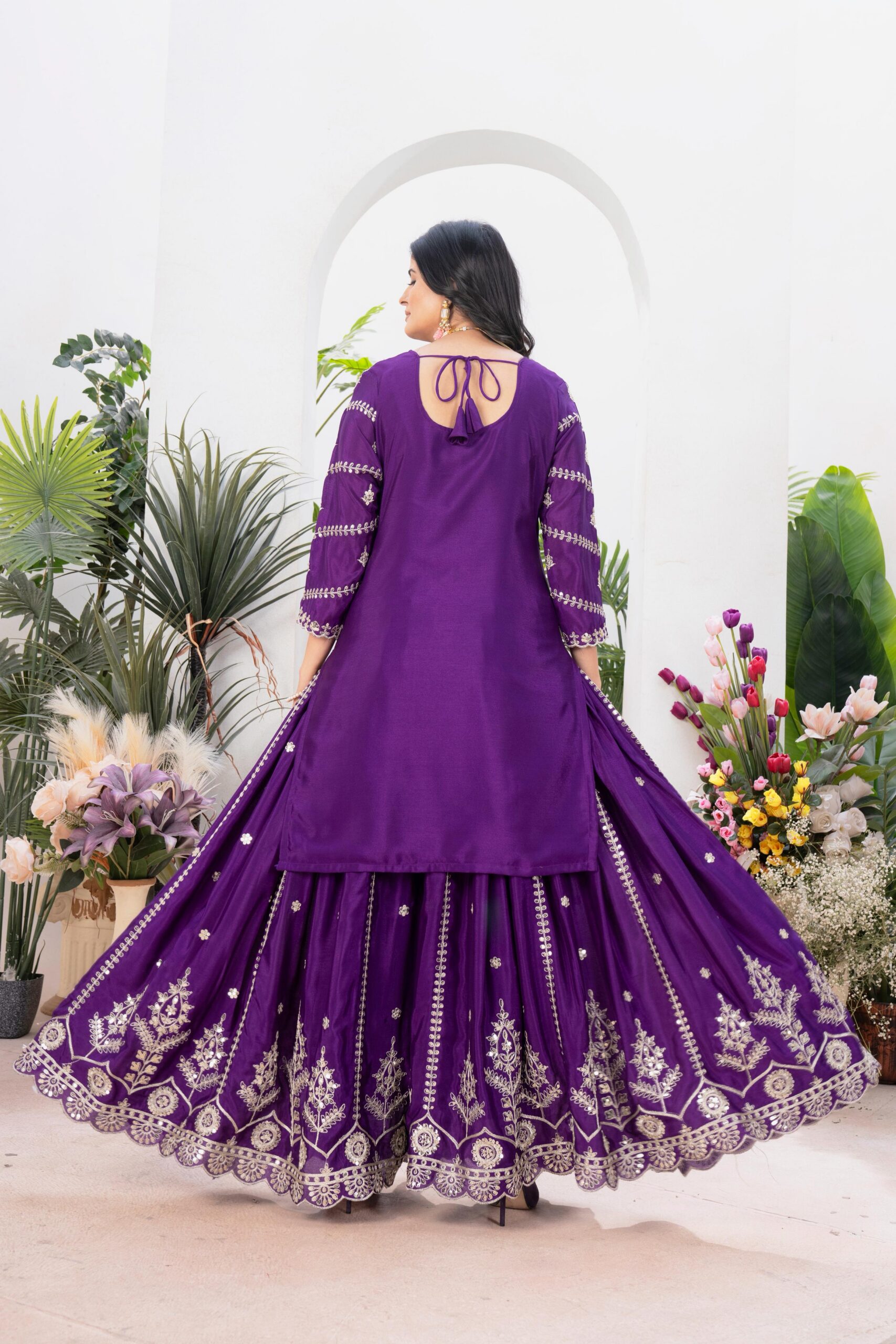 Palazzo fabric :Pure Heavy Chinon Silk With Heavy Embroidery Coding Sequence Work (Fully Stitched)