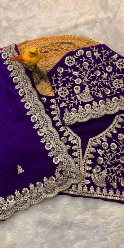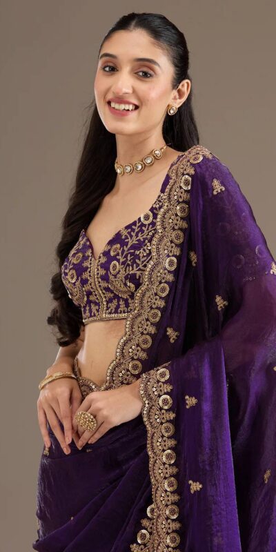 Purple Fandy Satin Silk Zari Work Saree