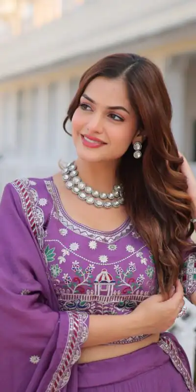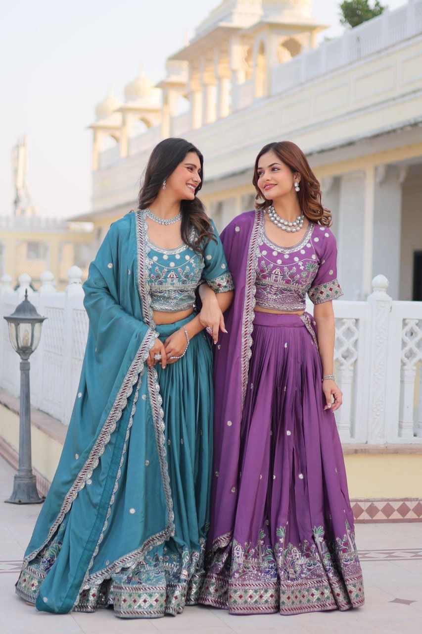 Purple Pure Chinon Embroidery Work Lehenga Choli