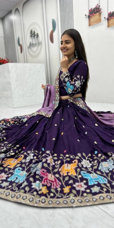 Purple Vichitra Silk Lace Border Work Lehenga Choli