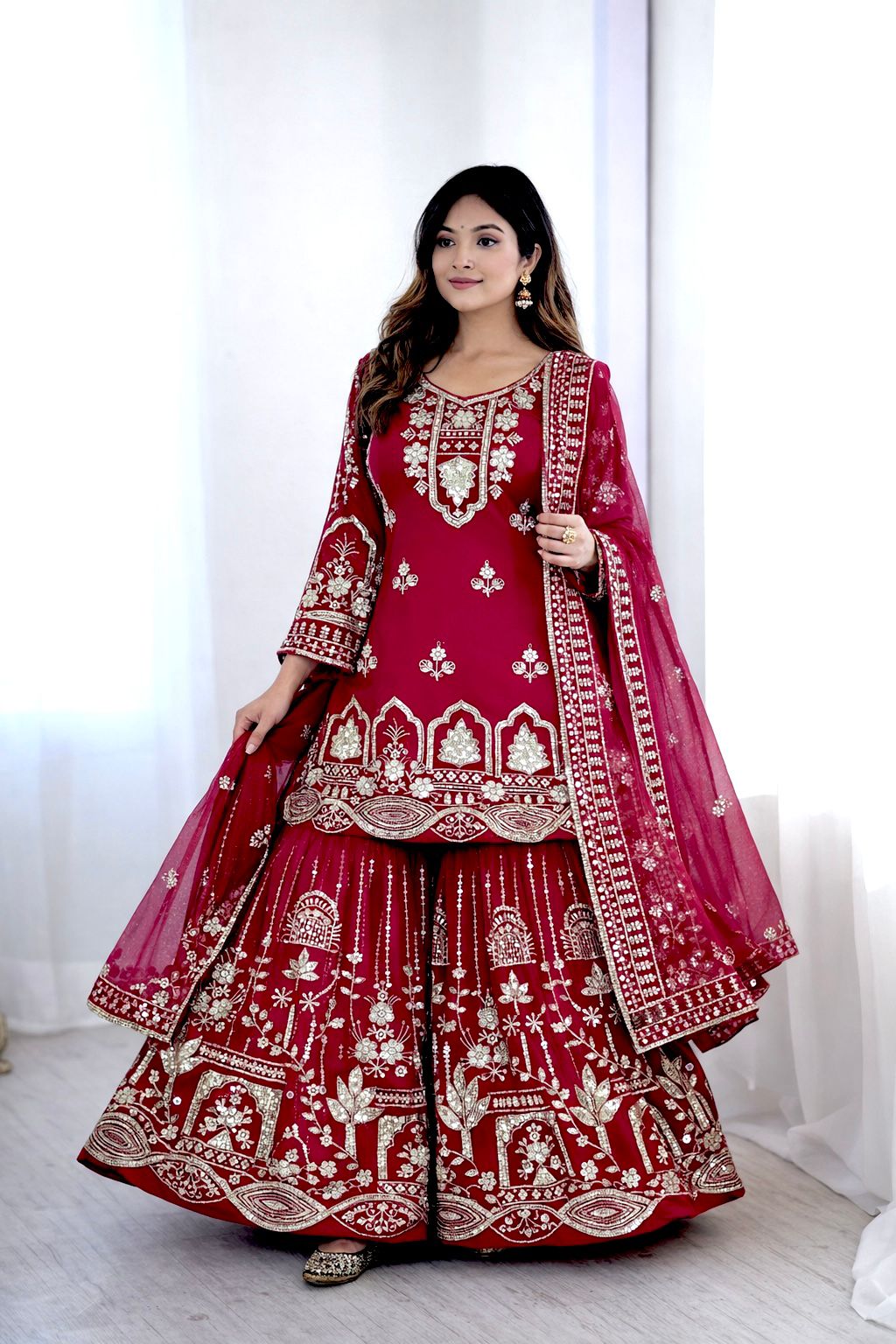 Dupatta Fabric:Pure Fox Georgette With Embroidery 5 mm Sequences Work With Full-Stitch