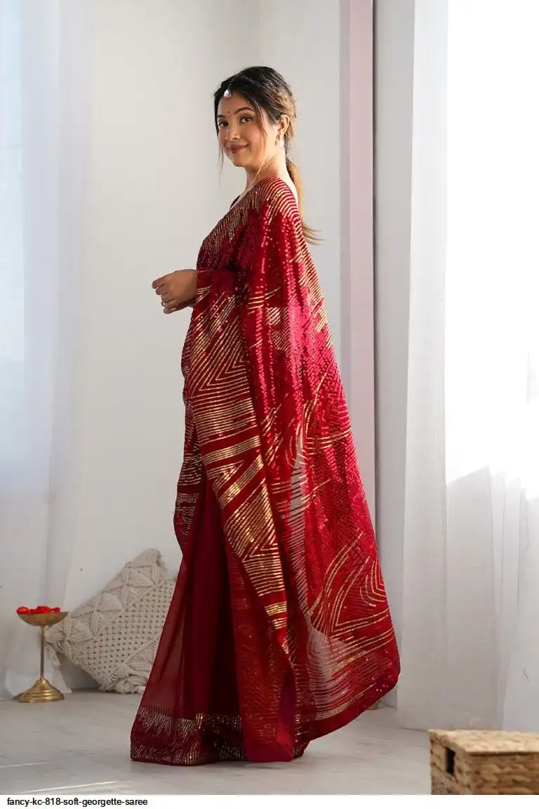 Organza Indian saree ki border patli hai, spotlight events ke liye enough impactful nahi; intimate gatherings ke liye chal jati.