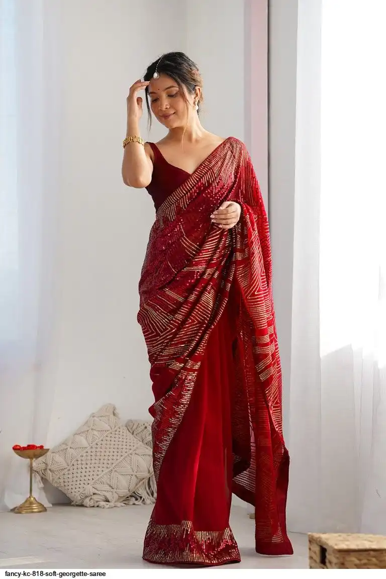 Saree Work- Embroidery Sequence Work With Sequence Lace