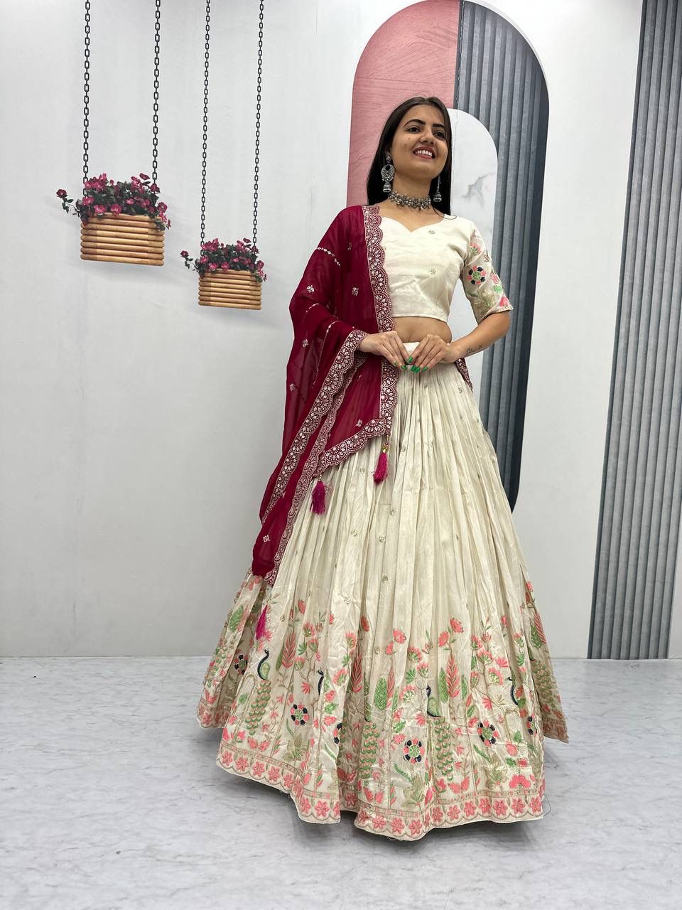 1 Lehenga :: 1 Blouse :: 1 Dupatta :: Drawstring with Zip