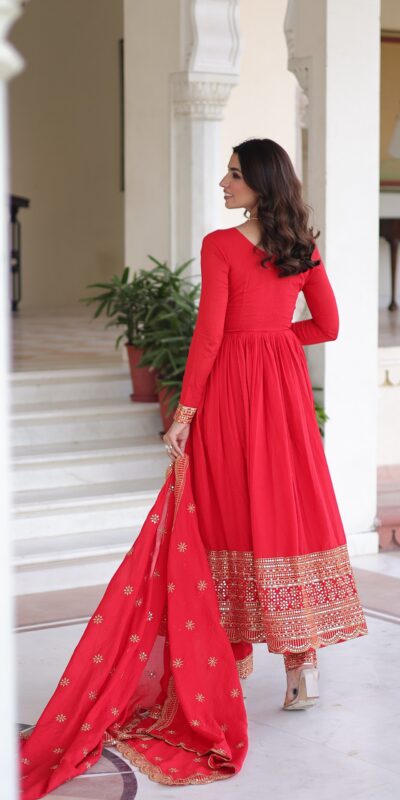 Red Vichitra Silk Embroidery Sequins Work Gown
