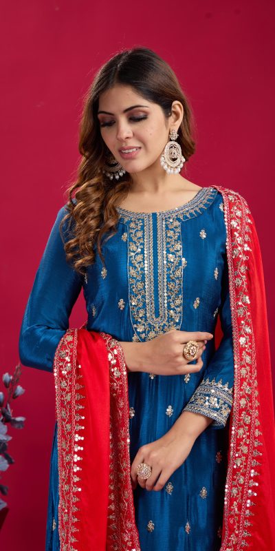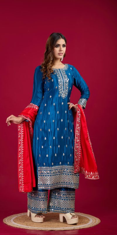 | Fabrics | Top Fabric :Pure Chinnon Silk With Heavy Embroidery Coding Dori-Sequence Work With Full Sleeve Top Inner : Heavy Micro Cotton Top Size :Free Size Fully Stitched Ready To Wear Top Length : 44-45 InchPent Fabrics :Chinnon Silk With Embroidery Sequence Work Full stitched Pent Length:40-41 Inch Dupatta Fabric : Pure Chinnon Silk With Embroidery Coding Dori-Sequence Work With Lace Border |