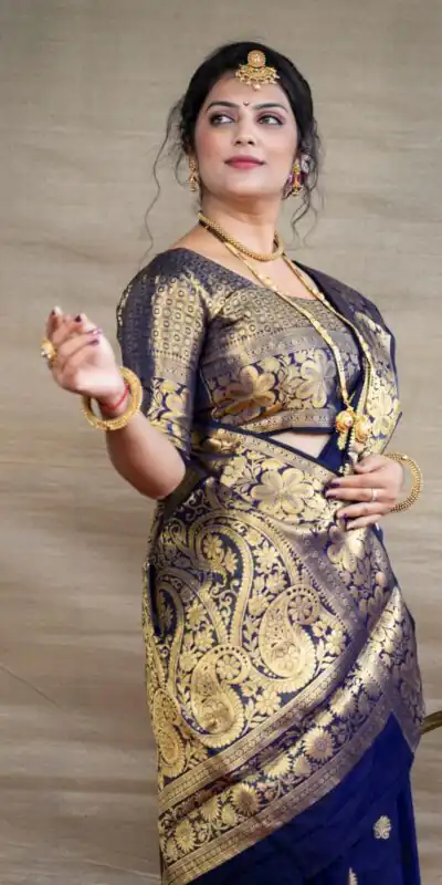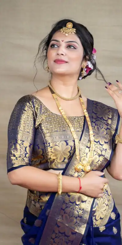 Royal Blue Lichi Silk Border Work Saree