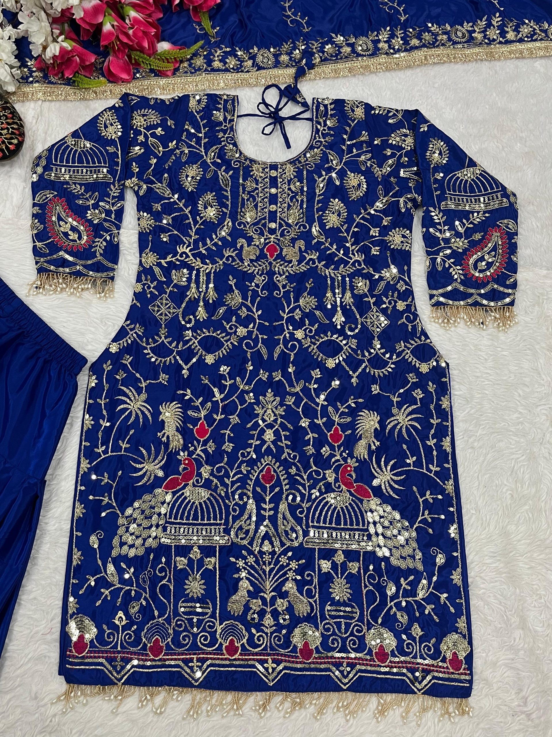 Royal Blue Natural Crep Embroidery Work Salwar Suit