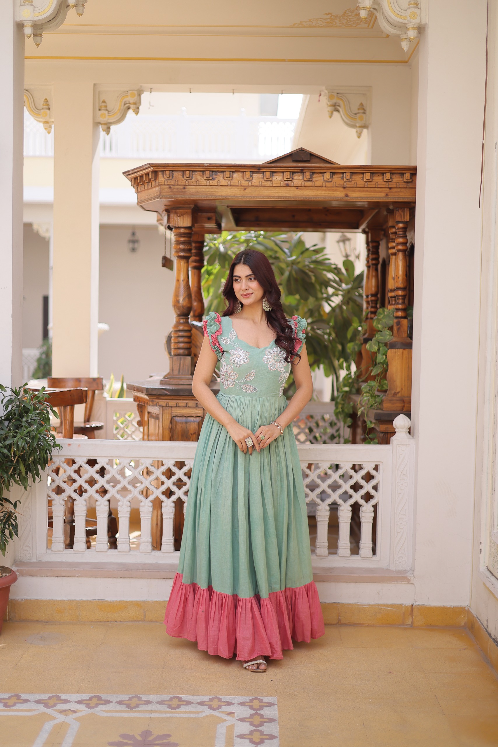 Fabric & Work :- Cotton With Sequins Multi threaded Beads Embroidered Work.