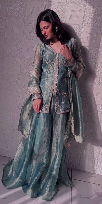 Sky Blue Fandy Silk Sequins Work Salwar Suit