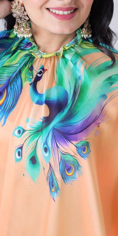 Stylist Peach Color Japan Satin Digital Print Work Saree
