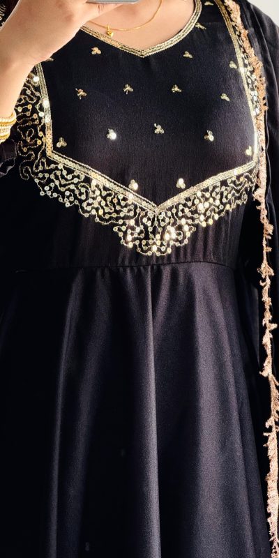| Fabrics | Gown Fabric :heavy Star Georgette With Embroidery Work With Full Sleeves And Work Gown Inner : Micro Cotton Gown Size : Free Size Sami Stitched Gown Length : 51-inc Gown Flair : 7.5 Mtr Fully StitchedBottom Fabric : heavy Micro Cotton And Elastic Full-stitched To Dupatta Fabric :heavy Star Georgette And Four Side Lace Work Dupatta Length: 2.10 Mtr |