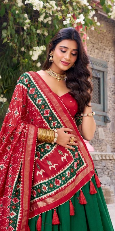 174 reviews for Green Tushar Silk Patola Printed Lehenga Choli
