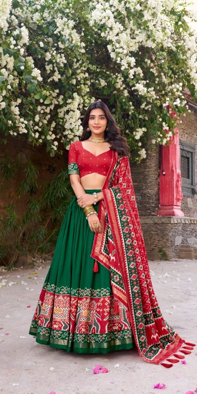 Green Tushar Silk Patola Printed Lehenga Choli