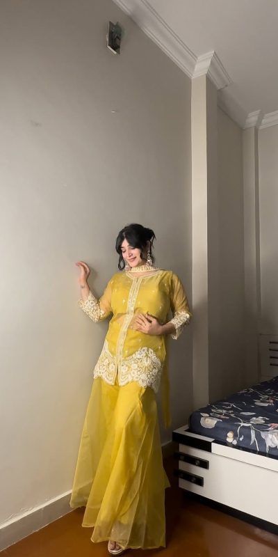 Superb Yellow Color Organza Sequence Work Indo-Western Suit