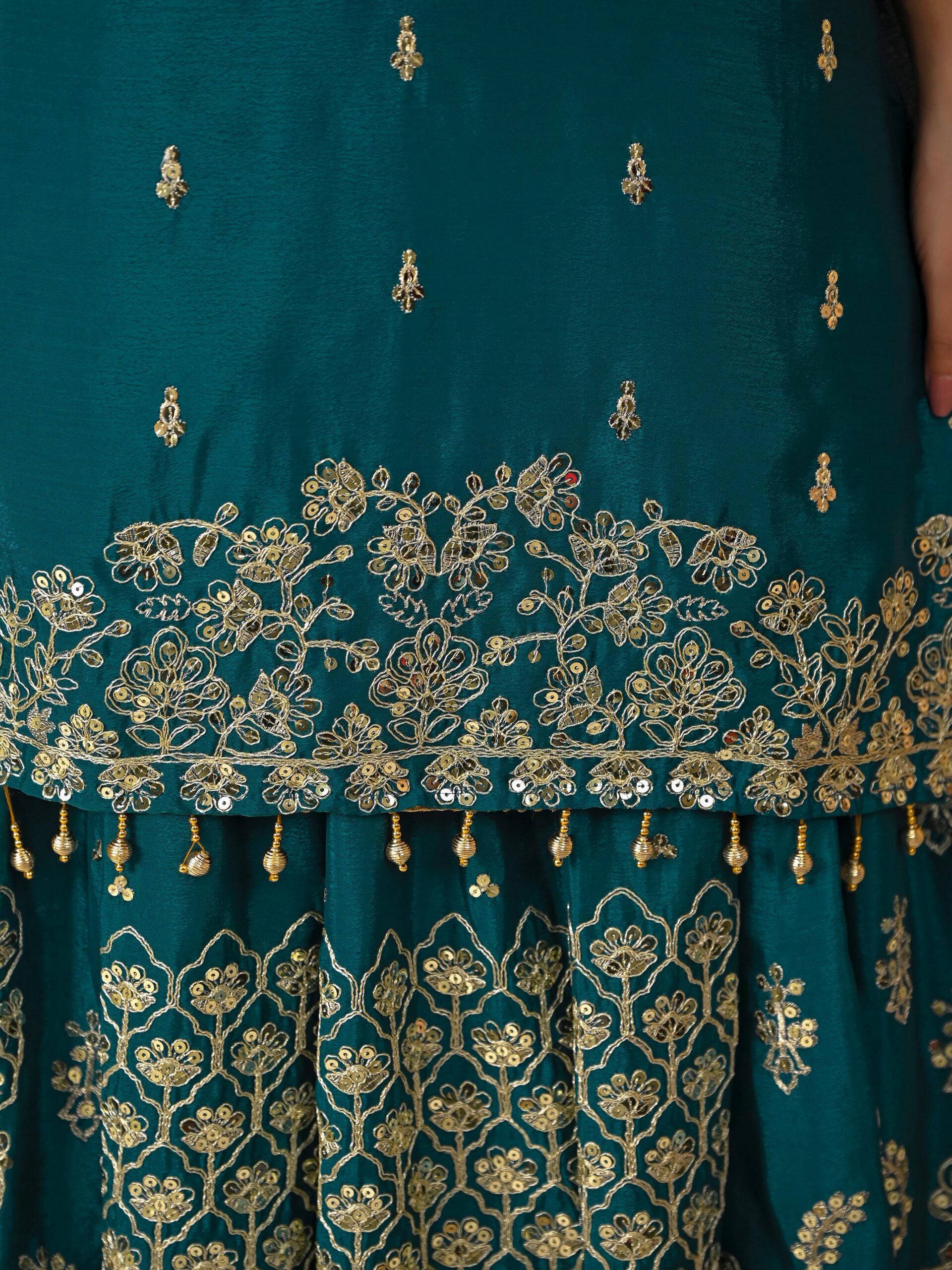 Top Work :- Embroidery work with 5 mm Sequence work , Zari Work .