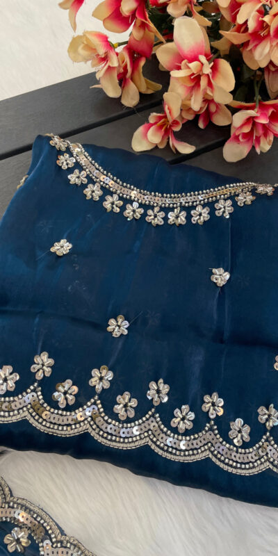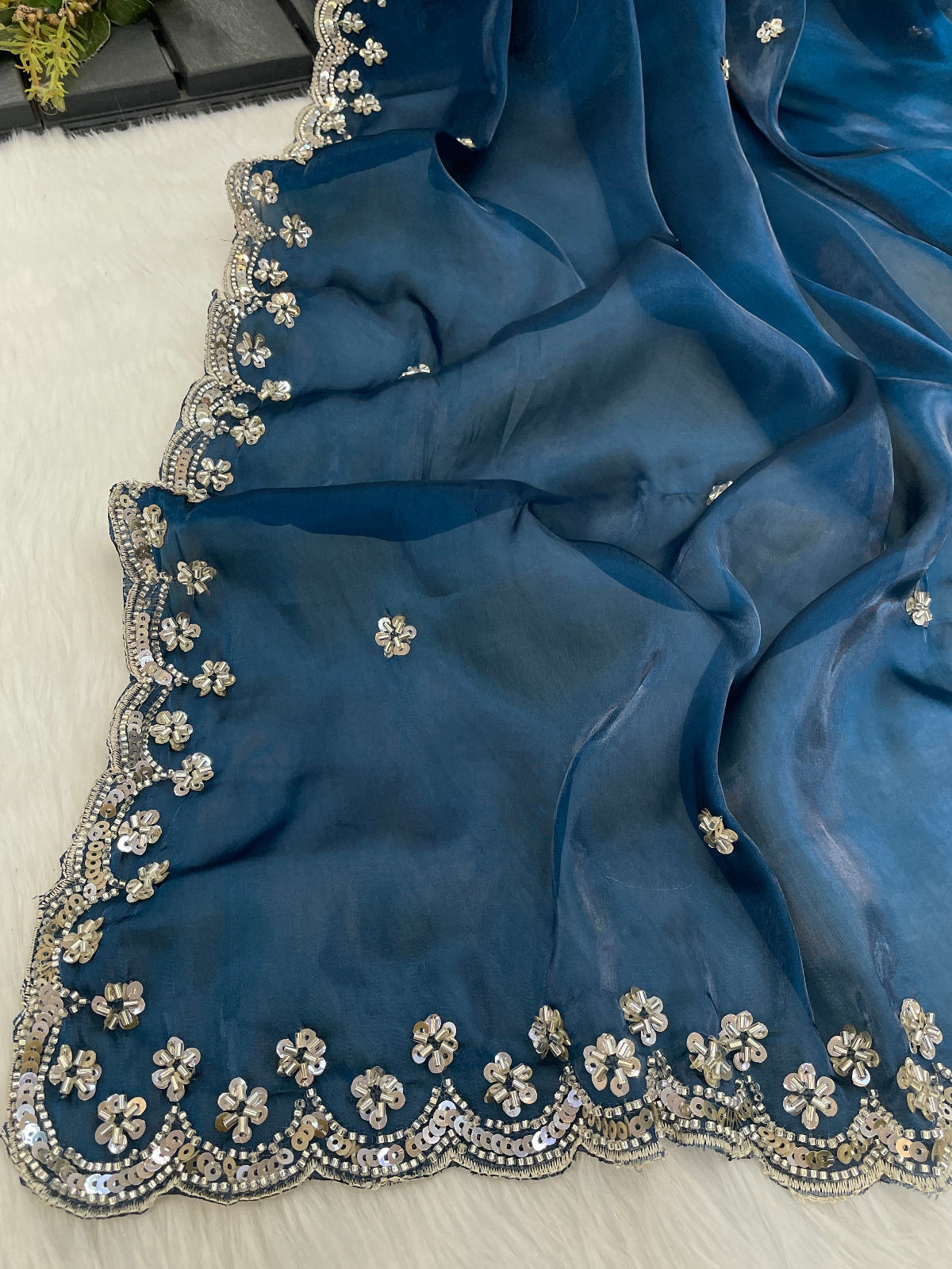 Teal Jimmy Chou Silk Embroidery Work Saree