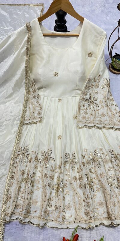 White Chinon Silk Lace Embroidery Work Salwar Suit