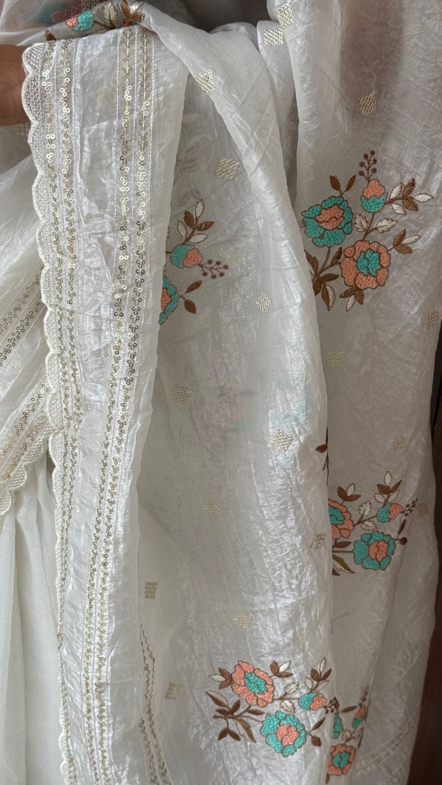 Saree Fabric : Premium Crush Organza Saree With Saree Work : Self Sequins Weaving Pattern All Over The Saree With Scallop Border