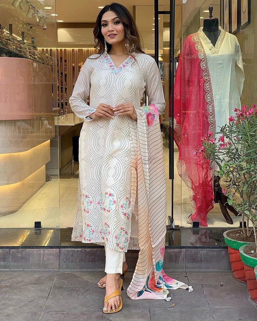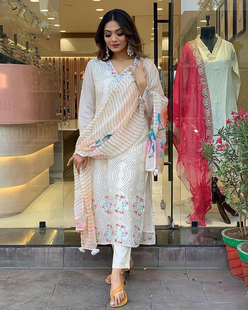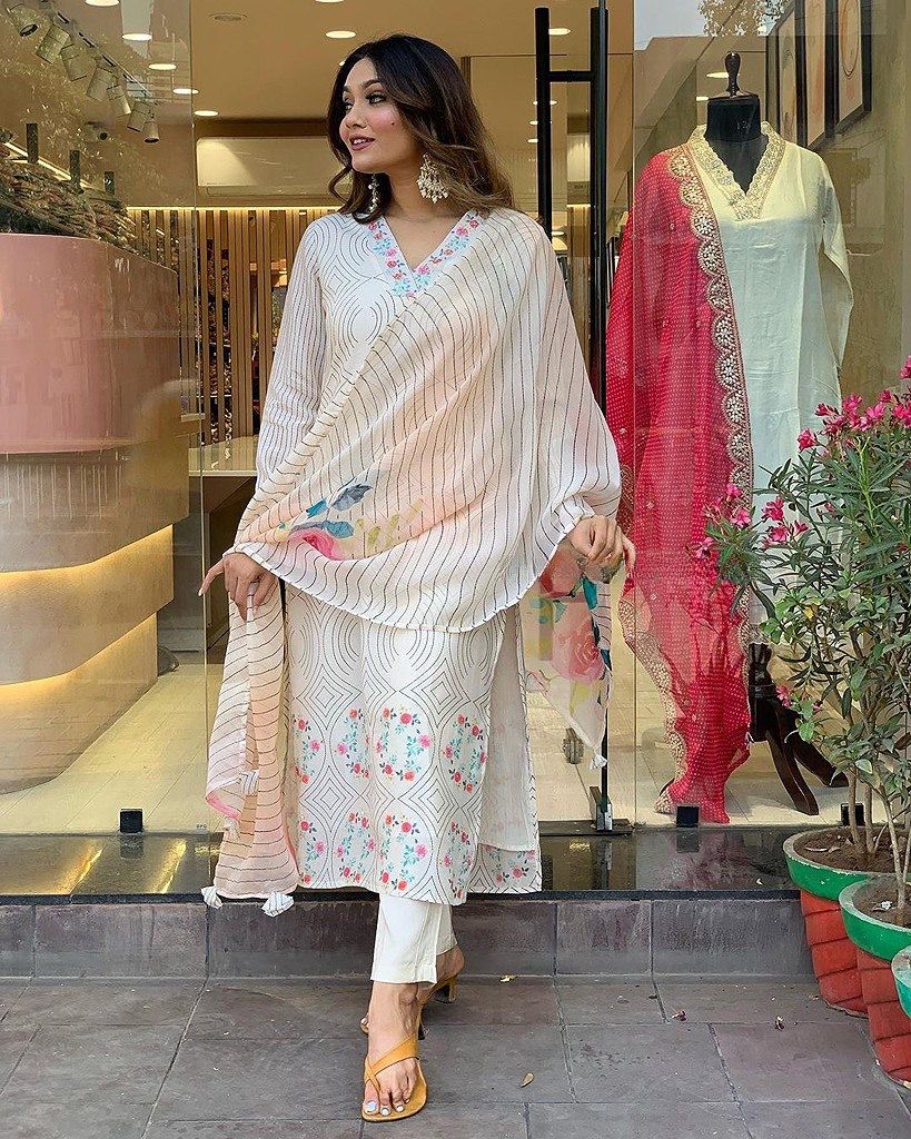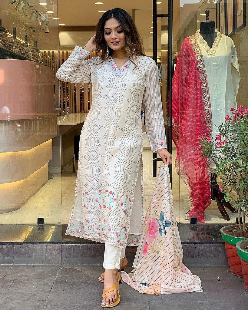 White Maslin Digital Printed Salwar Suit