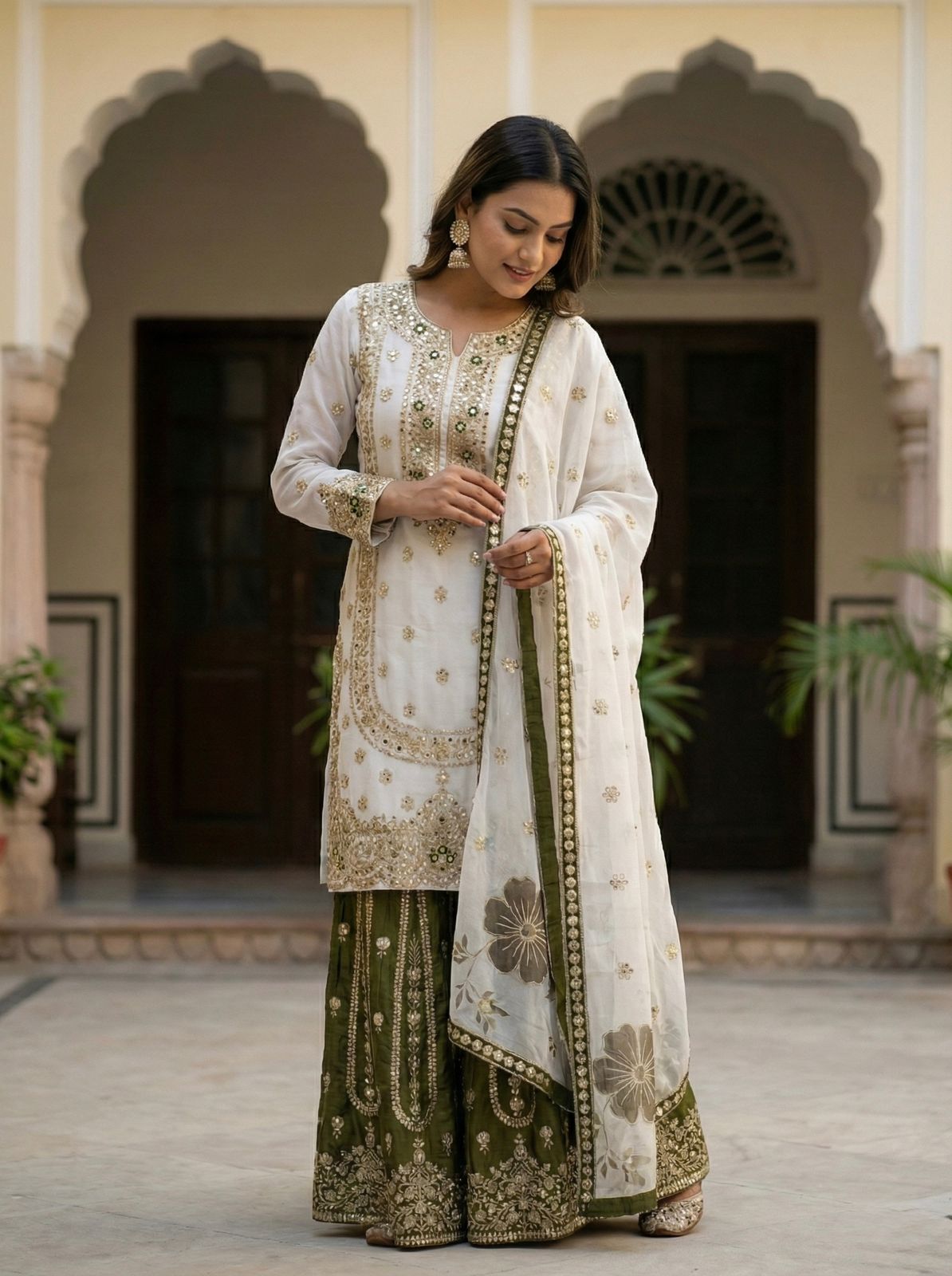 White Organza Silk Digital Print Embroidery Salwar Suit