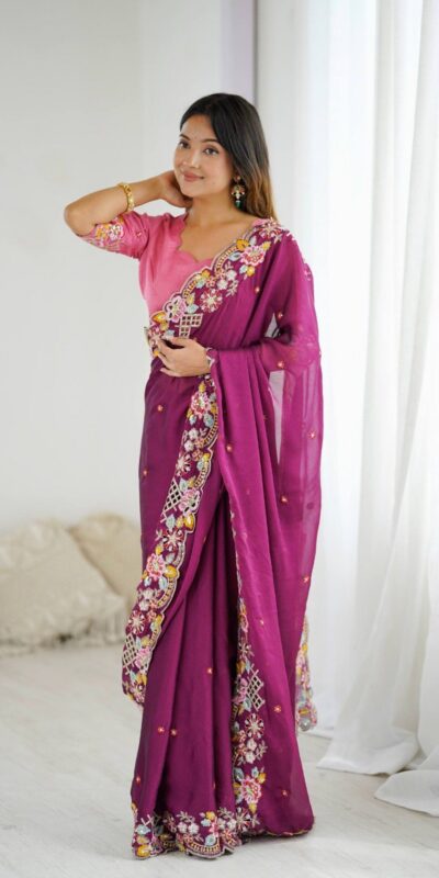 Saree Detail Saree Fabric: Premium Noha Crush Saree Work : Heavy Embroidery Threads , Sequins Work & Fancy hand Cut work In Work   Blouse Fabric : Premium Mono Silk Blouse Work : Heavy Embroidery Threads & Sequins Work Blouse UN stitched