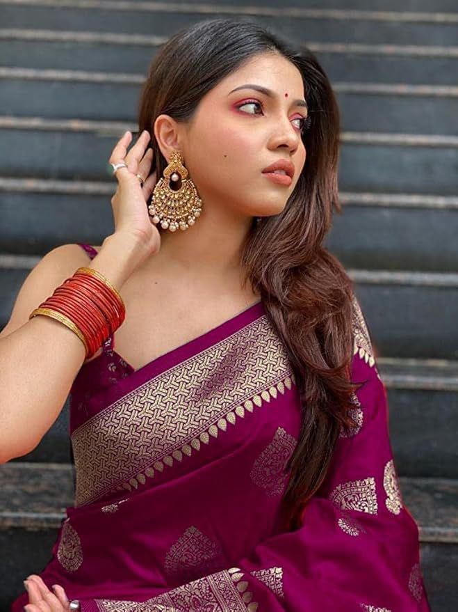 Wine Soft Lichi Jacquard Rich Pallu Saree