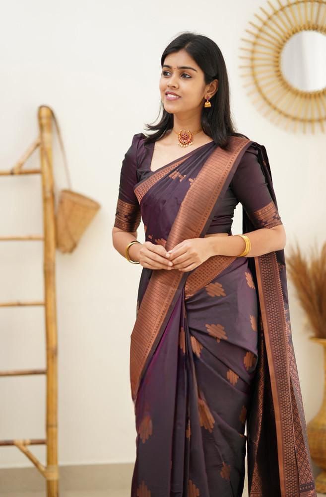Wine Soft Lichi Silk Jacquard Rich Pallu Saree