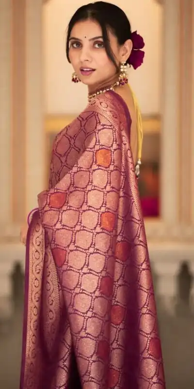 Wine Soft Lichi With Jacquard Work Silk Saree